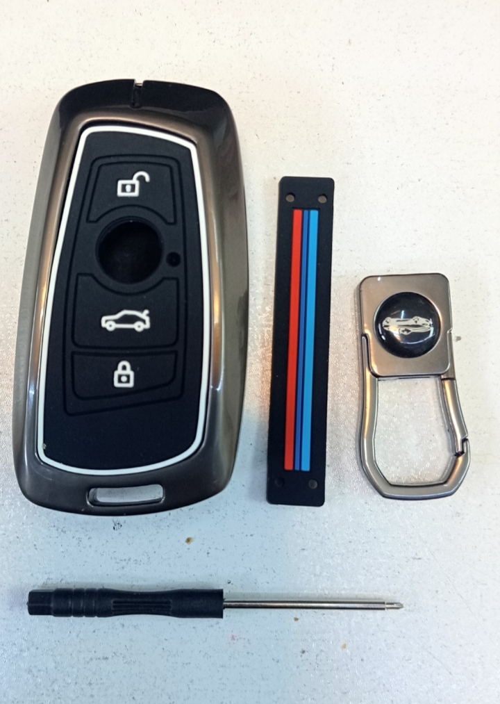 راهنمای نصب: ابتدا لایه ی سیلیکونی را برروی سوئیچ یا ریموت خودرو بکشید و سپس پیچ های لایه ی فلزی را باز کرده و روی سوئیچ یا ریموت سوار کنید و پیچ های آن را ببندید بعد از آن آویز سیلیکونی را به حلقه ی پایین کاور انداخته و آن را طوری خم کنید که لبه های آویز دقیق روی هم قرار بگیرد و سپس لبه ی آویز سیلیکونی خم شده را داخل قسمت پایین قلاب فلزی نموده و پیچ های آن را ببندید
